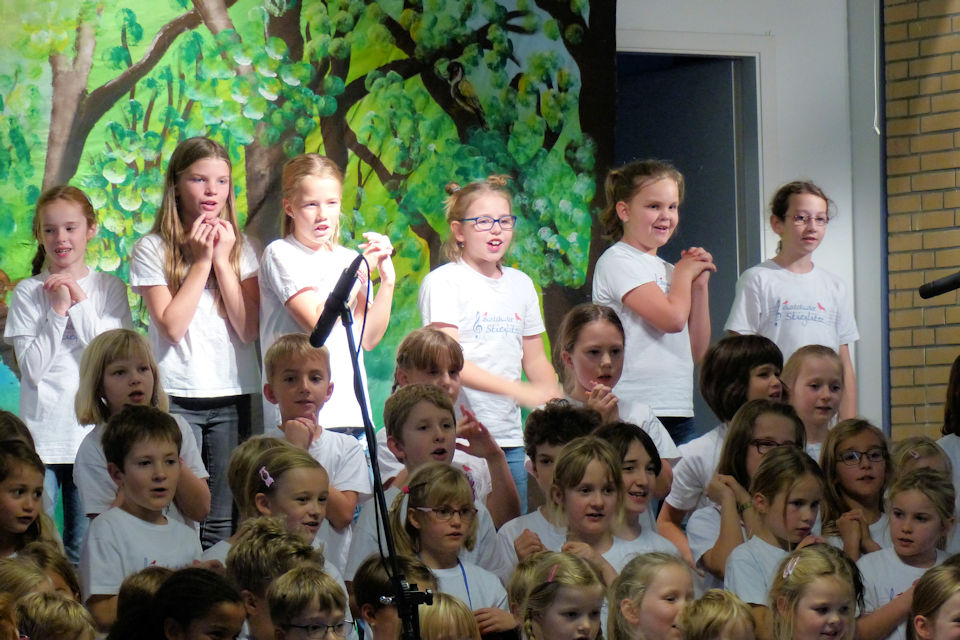 Es ist wieder soweit: Ein ganzer Haufen Erstklässler hat geschnuppert und bereits fleißig geübt, und schon geht’s rauf auf die Bühne!