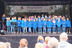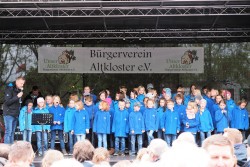 Nachdem die Feuerwehr vor den Augen vieler Gäste am 1. Mai den Maibaum aufgestellt hatte, konnte der gesellige Teil auf dem Schafmarkt beginnen: Unsere Kleinen Buxtehuder Stieglitze eröffneten das vom Bürgerverein Altkloster e.V. wieder liebevoll zusammengestellte Nachmittagsprogramm mit ihrem Lied "Wir sind die Stieglitze" und zauberten den Besuchern das eine oder andere Lächeln aufs Gesicht.