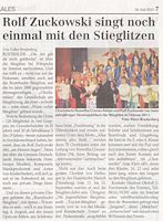 Rolf berichtete aber auch von der schwierigen Situation in den Hochwassergebieten entlang der Elbe, die er kürzlich bereist hat, besonders von der Lage in der Grundschule und in der Kindertagesstätte in Elster, wo die Buxtehuder Stieglitze 2012 noch ein wunderschönes Konzert-Wochenende verlebt hatten und viele neue Freunde gewonnen haben. Der schwer beschädigte Kindergarten wird aber wieder neu aufgebaut werden - um auch dabei helfen zu können, wies Rolf auf die "Aktion Kleiner Prinz" hin, für die auch während des Konzerts gesammelt wurde.
