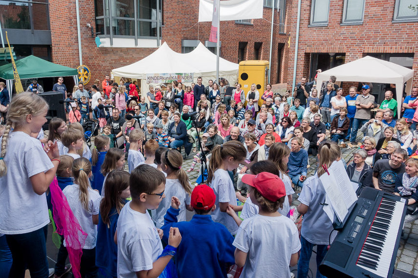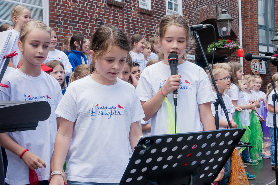 Das Kinderkunstfest ist wohl eins der Lieblingsfeste der Kleinen Stieglitze. Wie immer war die Bühne auch am 18. Juni wieder voll, und auch das Wetter war wieder einmal so richtig schön. Der "Sound" auf dem Stavenort ist immer besonders gut, und so haben alle den Auftritt sichtlich genossen. Die Solisten haben ihre Sache super gemacht, sowohl die ganz Kleinen als auch die Größeren wagten sich ans Mikrofon. Die Stimmung war wirklich gut und das "Belohnungseis" hinterher war dann der krönende Abschluss.