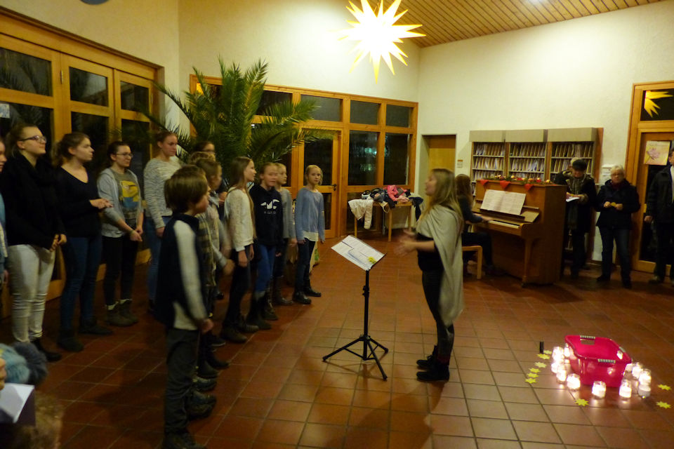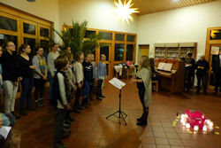 In diesem Jahr haben die Großen Stieglitze beim "Lebendigen Adventskalender" der Paulusgemeinde mitgemacht. Bei den Kleinen passte es leider terminlich nicht. Die Großen sind eingesprungen und haben am 7. Dezember im Foyer der Freien evangelischen Gemeinde, wo sie auch immer proben, einen ganz wunderbaren Moment der Stille und des Innehaltens gezaubert.