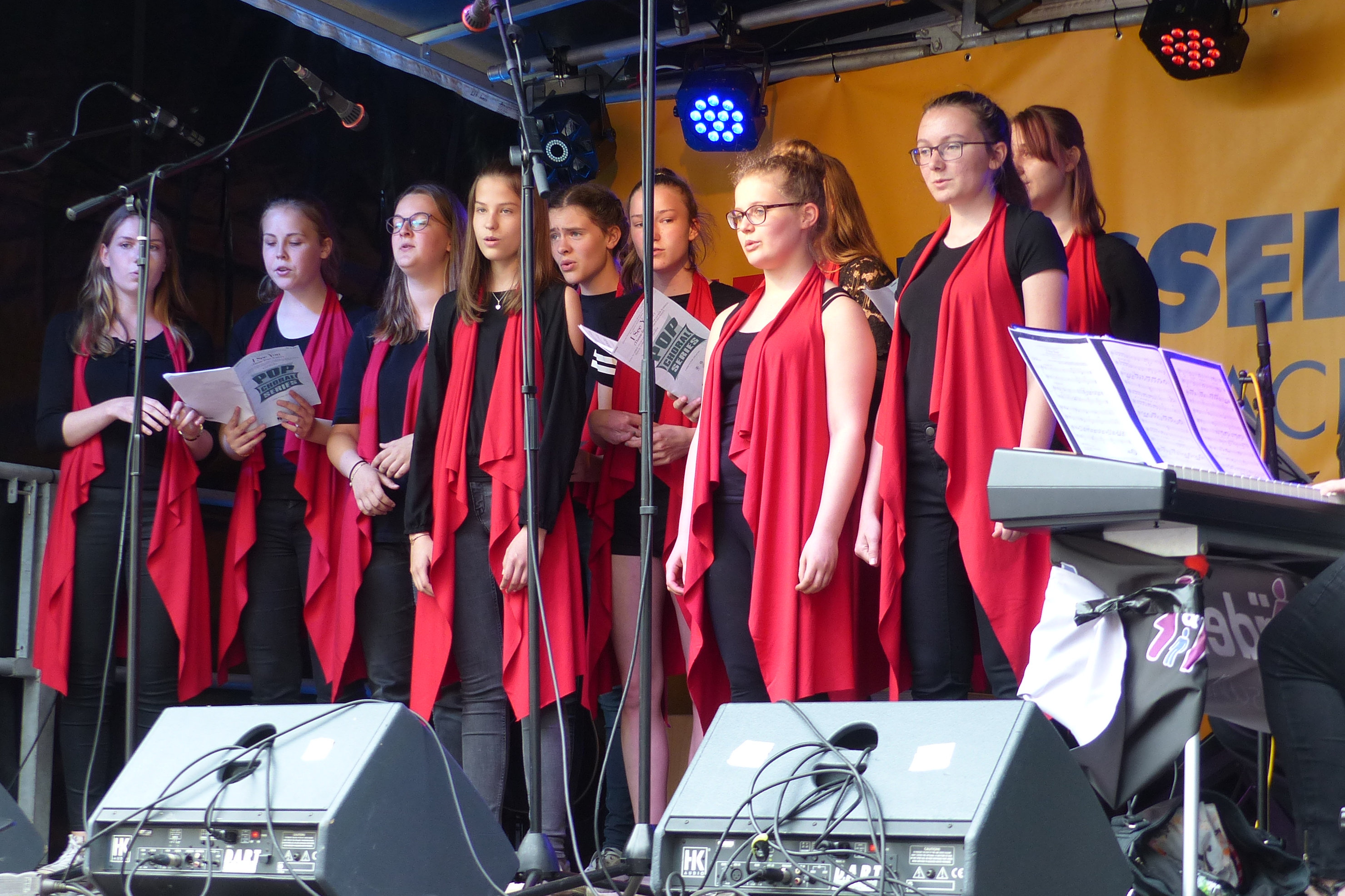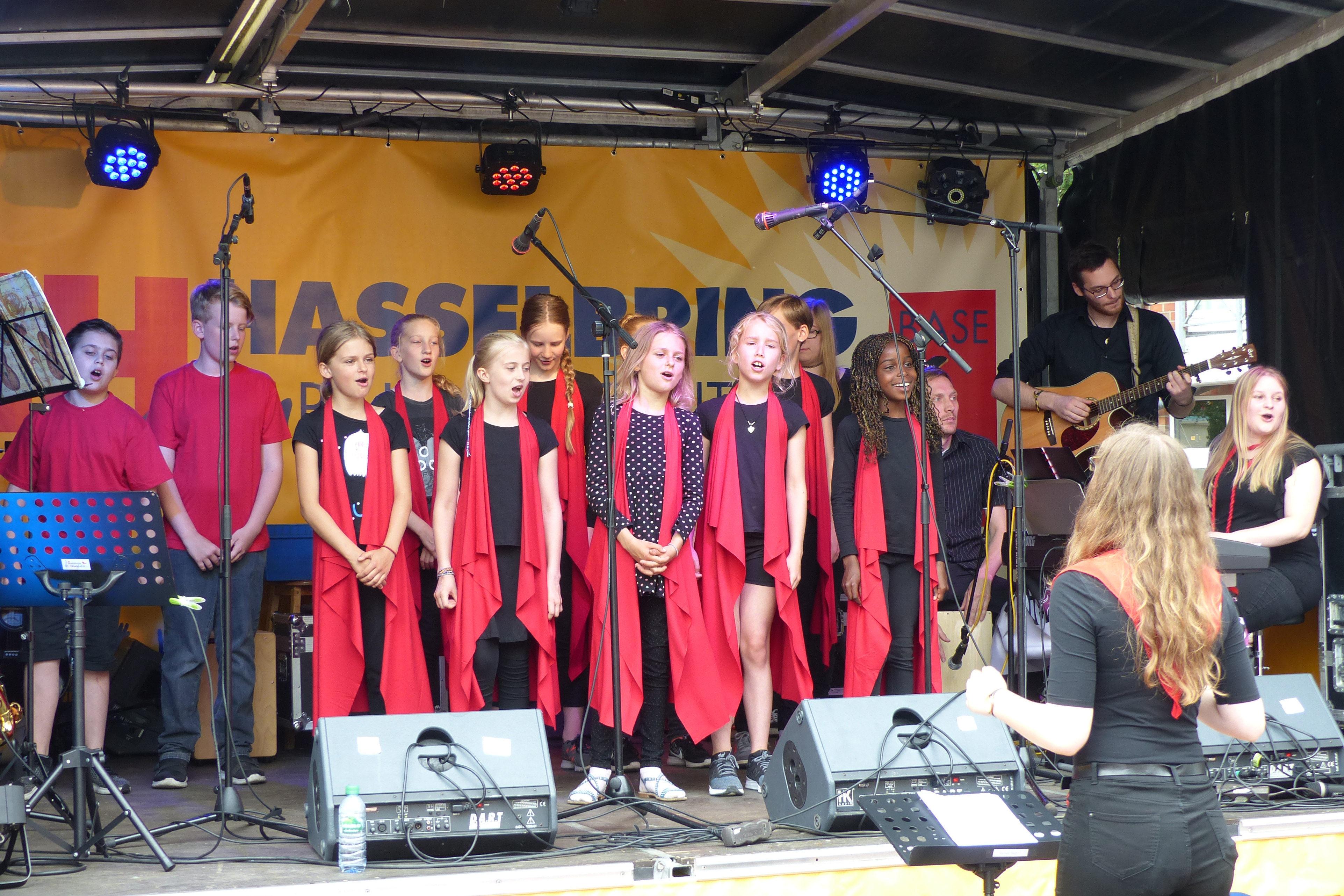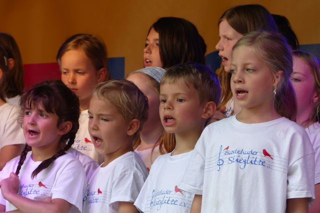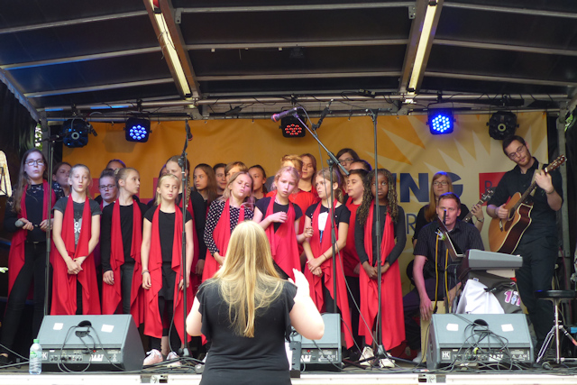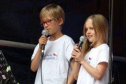 Schön war es, bei bestem Wetter auf dem Rathausplatz, viele Passanten blieben stehen und hörten sich den ganzen Auftritt an, die Kleineren konnten sich mal in Ruhe anhören und ansehen, was bei den Gruppen mit Chorleiterin Nathali so passiert, und zum krönenden Abschluss freuten sich alle noch auf Julia, die zusammen mit Nils und ihrer Schwester Sophia als Trio "Die Mädels und ich" nach den Stieglitzen auf der Bühne stand. Alle (und nicht nur die Stieglitze) waren begeistert von diesem gelungenen Programm!