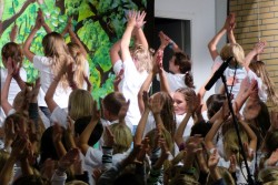 Die Kleinen begeisterten mit lustigen und auch mal nachdenklicheren Tönen die zahlreichen Zuschauer und brachten mit ihrem Flummi-Lied auch mal wieder alle in Bewegung.
