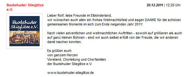 Die Buxtehuder Stieglitze freuen sich mit dir, lieber Christofer, und wünschen dir viel Freude und Erfolg!