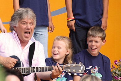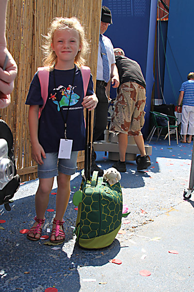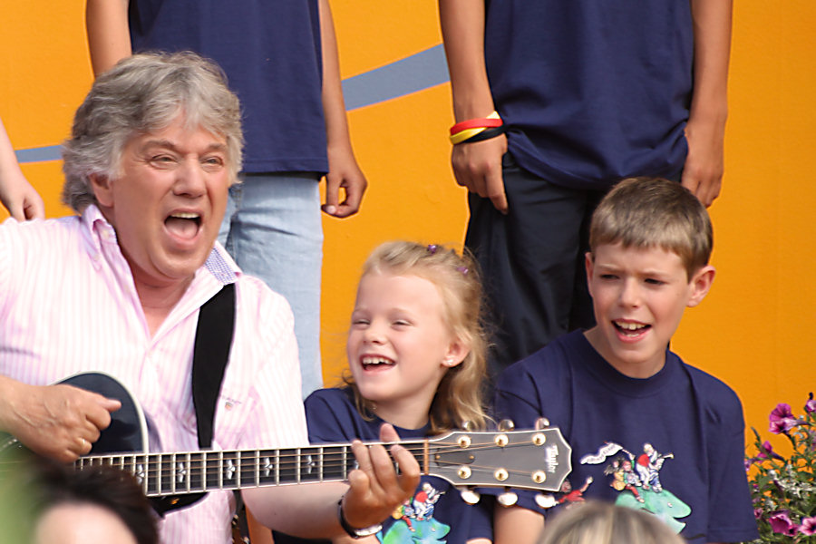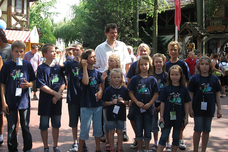 Während Rolf sich mit der Gitarre begleitete, stimmten unsere Kinder den Refrain des Liedes "Elbkinder" an und machten ihre Sache wirklich gut. Nach großem Applaus und Abgang von der Bühne blieb danach sogar noch Zeit mit VIP-Service - und somit vorbei an allen Warteschlangen - ein paar Attraktionen des tollen Europaparks zu besuchen.