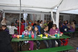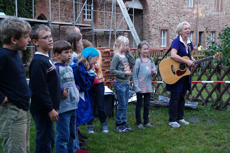 Um 17.00 Uhr fahren wir alle nach Altenhausen, singen gemeinsam im Schlosshof, bis um 19.00 Uhr Salate, Grillfleisch und Würstchen einladend duften.