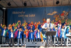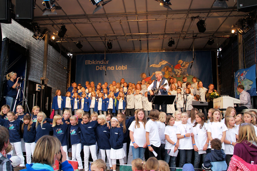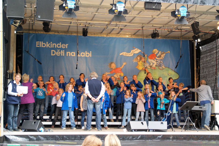 Dazu beigetragen haben auf der Bühne beim Familien-Biergarten "Mückenwirt": Die Magdeburger Elbkinder, die Stieglitze aus Buxtehude, die Elbkinder Brunsbüttel und der Chor Rošták aus Přelouč.