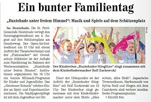 Auch für die Chorkinder der Buxtehuder Stieglitze auf der Bühne und für alle Großen und Kleinen im Publikum war das gemeinsame Konzert ein Geschenk! Dass das Wetter gar nicht hätte besser sein können, war dann noch das "Tüpfelchen auf dem I".