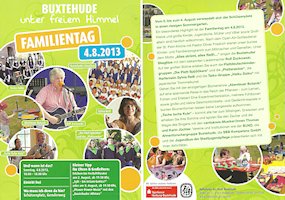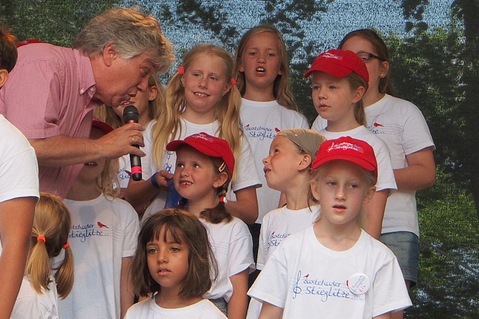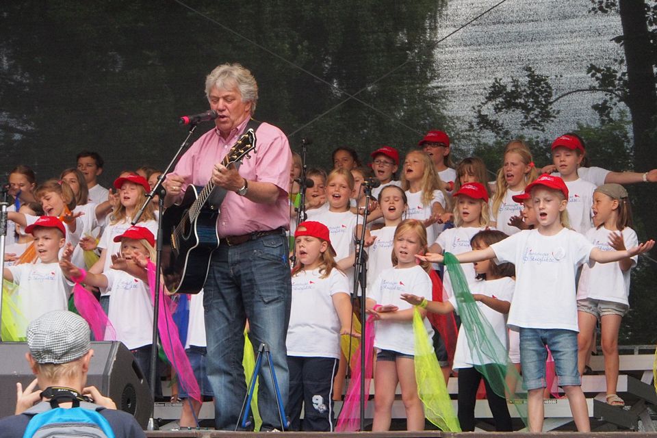 Schon viel früher als eigentlich im Programmablauf geplant betrat Rolf Zuckowski die Bühne beim Buxtehuder Familientag am 4. August 2013, den das städtische Kulturbüro als Veranstalter an einem tollen Standort zu einem großartigen Ereignis werden ließ. Nichts hielt den bekannten Liedermacher mehr im Schatten im Backstage-Bereich, denn "wenn Kinder meine Lieder singen, ist das für mich immer wie Weihnachten im Hochsommer"...