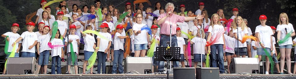Rund 70 Chorkinder im Alter zwischen sechs und zehn Jahren (unter der Leitung von Julia Korzeniowski und Roswitha Cramer-Kölzer sowie der Chorassistentin Christiane Fischer) beeindruckten vor und nach der Pause nicht nur mit ihrem mitreißenden Gesang, sondern auch mit ihrer Disziplin und ihrer "Professionalität" auf der Bühne: Die Allerjüngsten bekamen dafür einen verdienten Sonderapplaus!