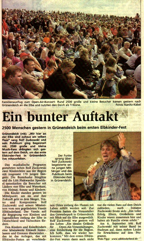 ... und auch dieser Abschluss der ersten Großveranstaltung des Elbkinderland e.V. wurde von der Presse überregional publik gemacht: