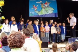Das Elbkinderland wächst: Buxtehuder Stieglitze singen mit Rolf Zuckowski beim Elbkinderfest in Coswig