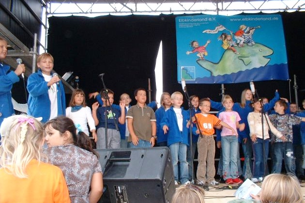 Gekrönt wurde das dreistündige Kinderchorfest mit dem mit dem großen Finale aller Chöre, die aus voller Kehle schmetterten "Wir hier an der Elbe", ein Lied, das weit über den Elbbogen hinaus zu hören war.