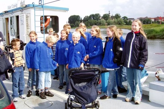Elbkinderfest in Coswig, das bedeutete für 90 Kinder aus vier Kinderchören Toben auf den Elbwiesen, Fahren mit der Fähre, Basteln an verschiedenen Ständen und Ölen der Stimmen mit Limonade oder Eis, um für den Auftritt gerüstet zu sein. Mittendrin elf Jungen und Mädchen aus Buxtehude, die angereist waren, um gemeinsam mit Kindern aus Cobbelsdorf auf der Bühne zu stehen.