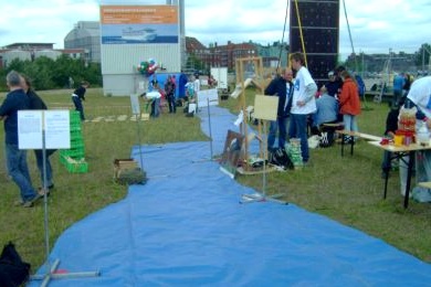 Im Rahmen des Elbebadetages in der Hafencity wurde die große Spielbahn wieder ausgerollt.